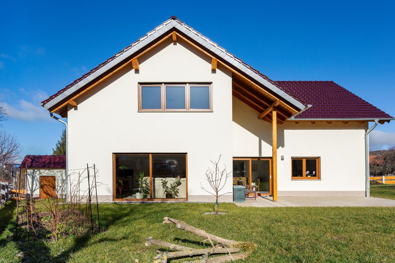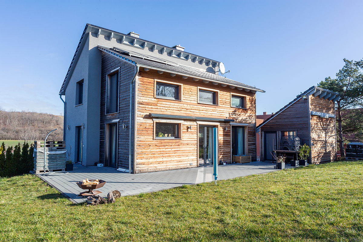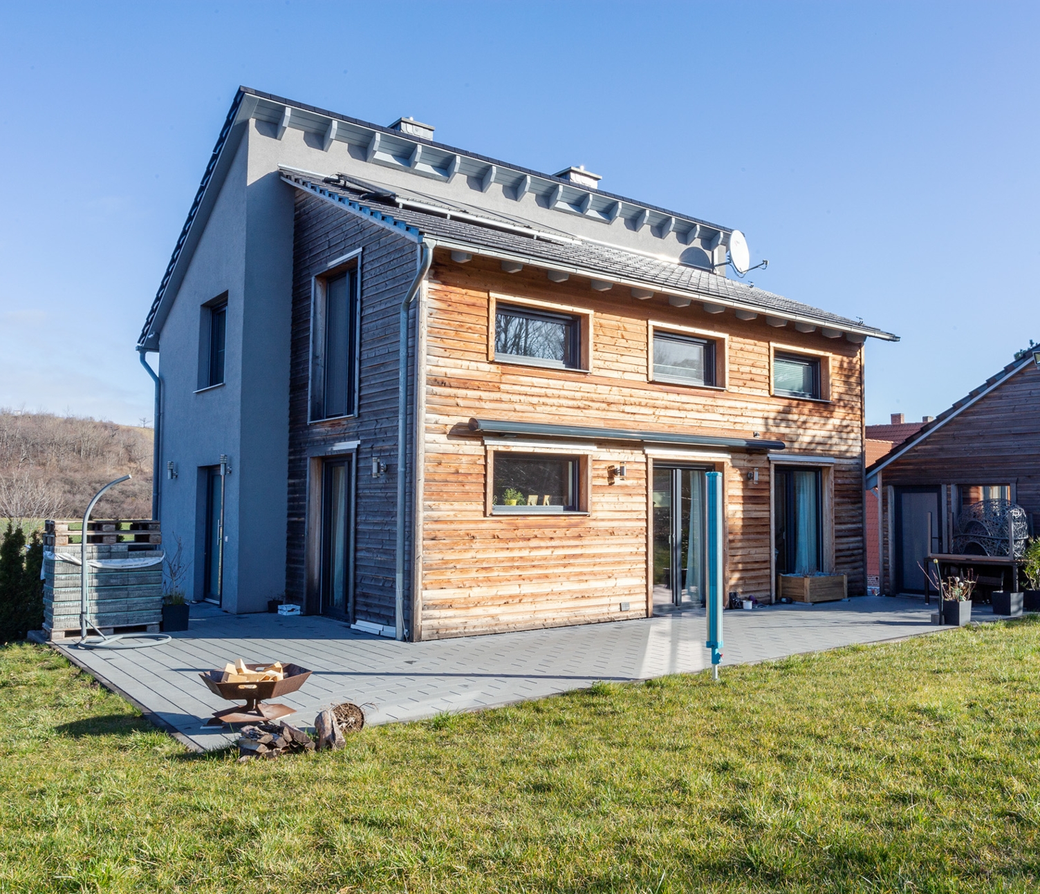 Perfekt an die schwierige Hanglage angepasst. Als besonderes Designelement wurde hierbei die Fassade zweiteilig gestaltet, auf der einen Seite klassisch mit einem verputzten Teil, auf der anderen Seite zeitlos mit sibirischer Lärche verkleidet. Ein besonderes Highlight ist in diesem Fall das wunderschöne Panoramafenster im offenen Küchenbereich, welches einen atemberaubenden Blick in die Natur ermöglicht. Alles natürlich in Verbindung mit modernster Heiztechnik und den Anforderungen an zeitgemäßen Wärmeschutz entsprechend.