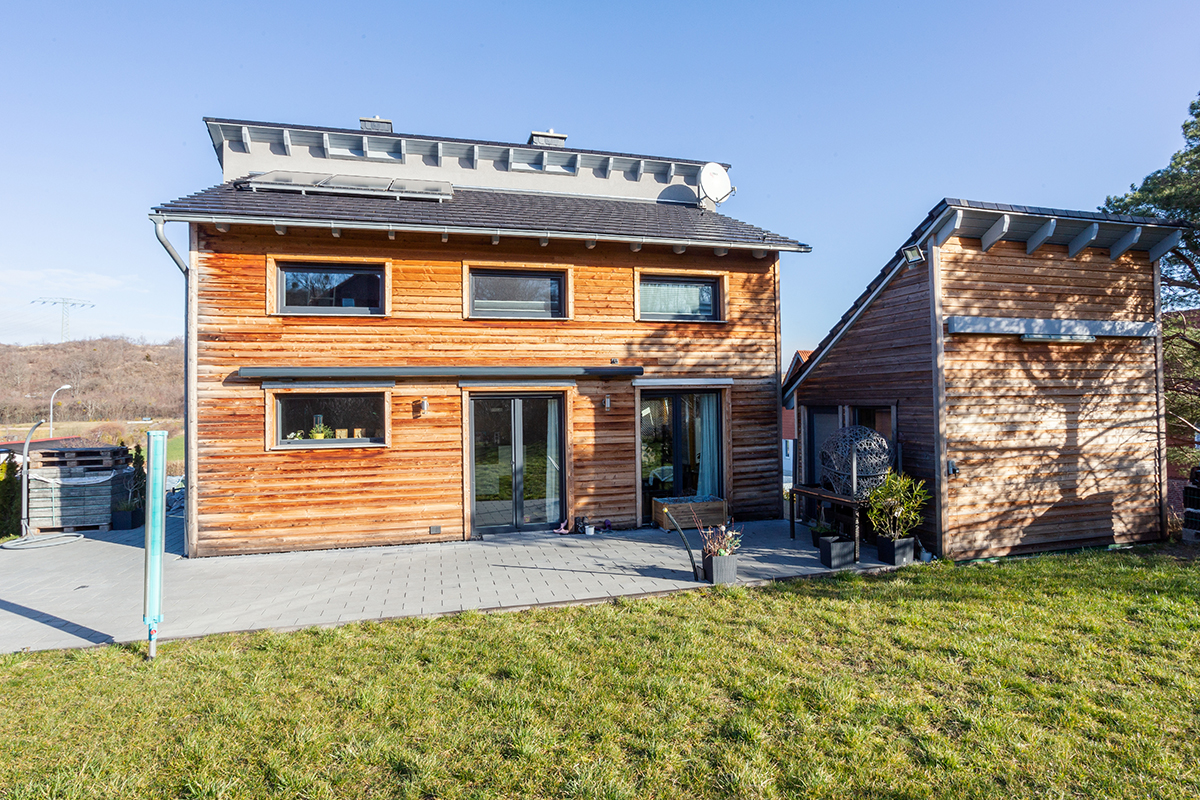 Eine andere Facette unseres Leistungsspektrums zeigt dieses Objekt. Hierbei handelt es sich um ein geradliniges Lagergebäude mit über 200 m² Nutzfläche. Auch hierbei stand natürlich Nachhaltigkeit im Vordergrund und es entspricht ebenfalls aktuellen Wärmeschutzansprüchen.