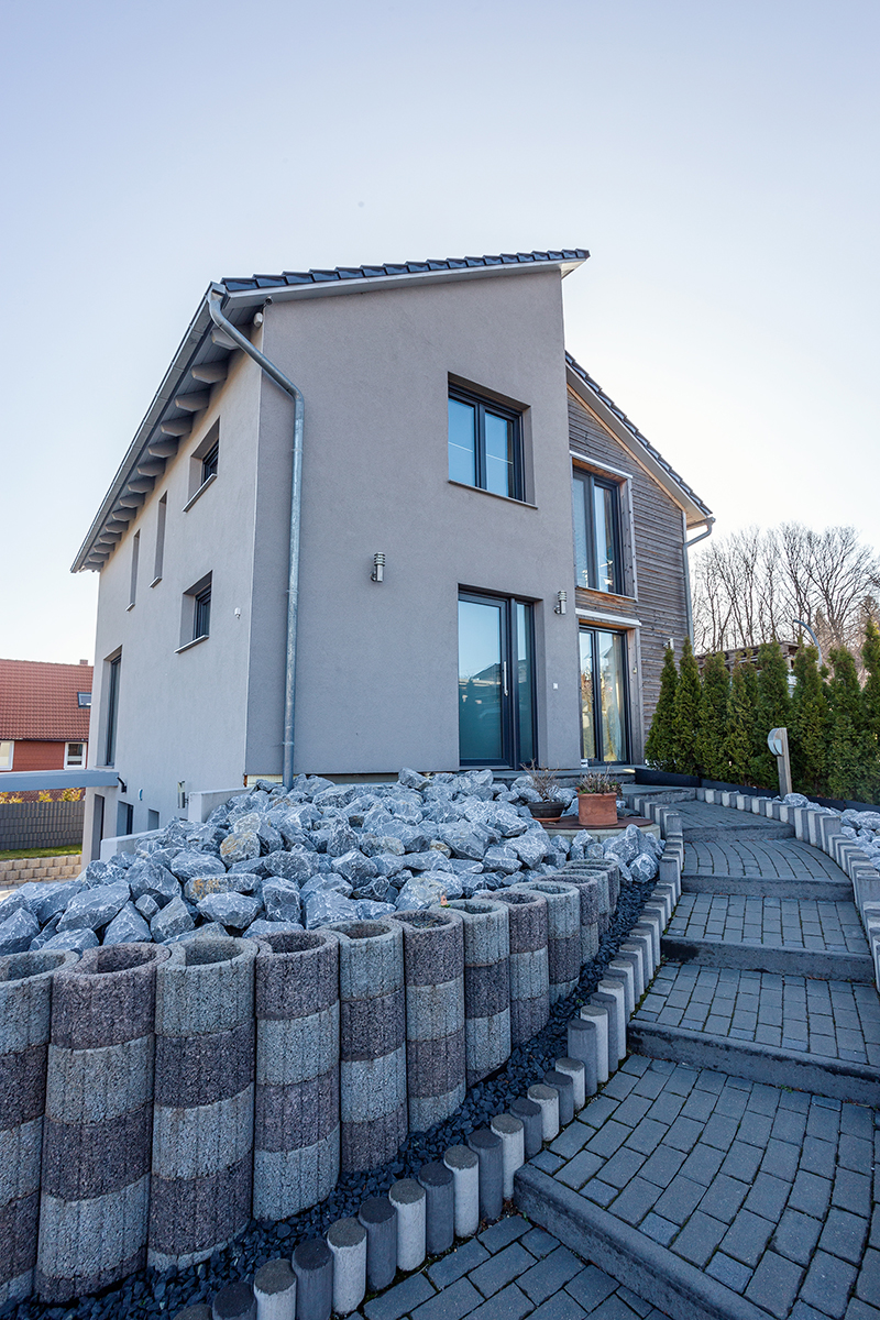 Wir begleiten Sie von der Planung, über die ersten Erdarbeiten, den Rohbau bis hin zum schlüsselfertigen Haus und dem Anlegen von modernen Grünanlagen. Lassen Sie uns zusammen Ihren Traum vom Eigenheim auf Augenhöhe und ohne Wenn und Aber verwirklichen.